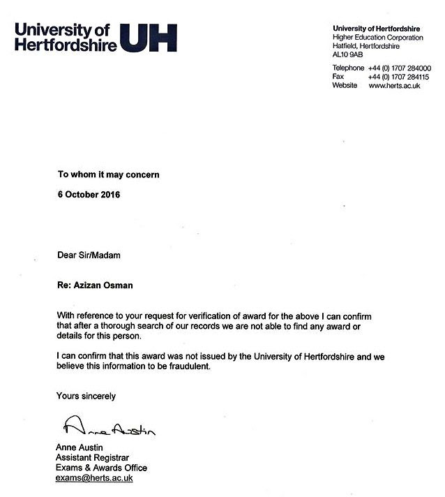 Akhirnya universiti berkenaan menafikan ada pelajar bernama Azizan Osman menerima ijazah berkenaan.