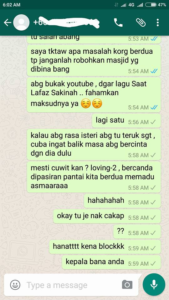 Mungkin tidak tahan dengan ceramah 'pedas' yang disampaikan oleh Fard, akhirnya lelaki itu terpaksa menyekat nombor Fard dari terus 'mengajarnya'. - The Reporter