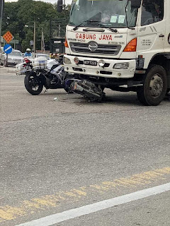 Bagan Serai : Seorang lelaki dan juga bapa temui ajal apabila motosikal yang dinaiki nya terlibat kemalangan dengan sebuah treler di lampu isyarat berhampiran May Bank Bagan Serai.